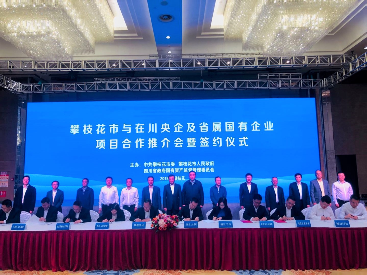 3月13日至14日,集团公司党委书记、董事长出席由省国资委与攀枝花市委市政府共同举行的“攀枝花市与在川央企及省属国有企业项目合作推介会暨项目签约仪式”。省国资委党委书记、主任徐进,省国资委党委委员、副主任沈汝源,省国资委党委委员、纪检组长蔡刚,攀枝花市委书记贾瑞云,市政协主席李群林,市委副书记虞平以及部分在川央企及省属国有企业主要负责人百余人出席签约仪式。