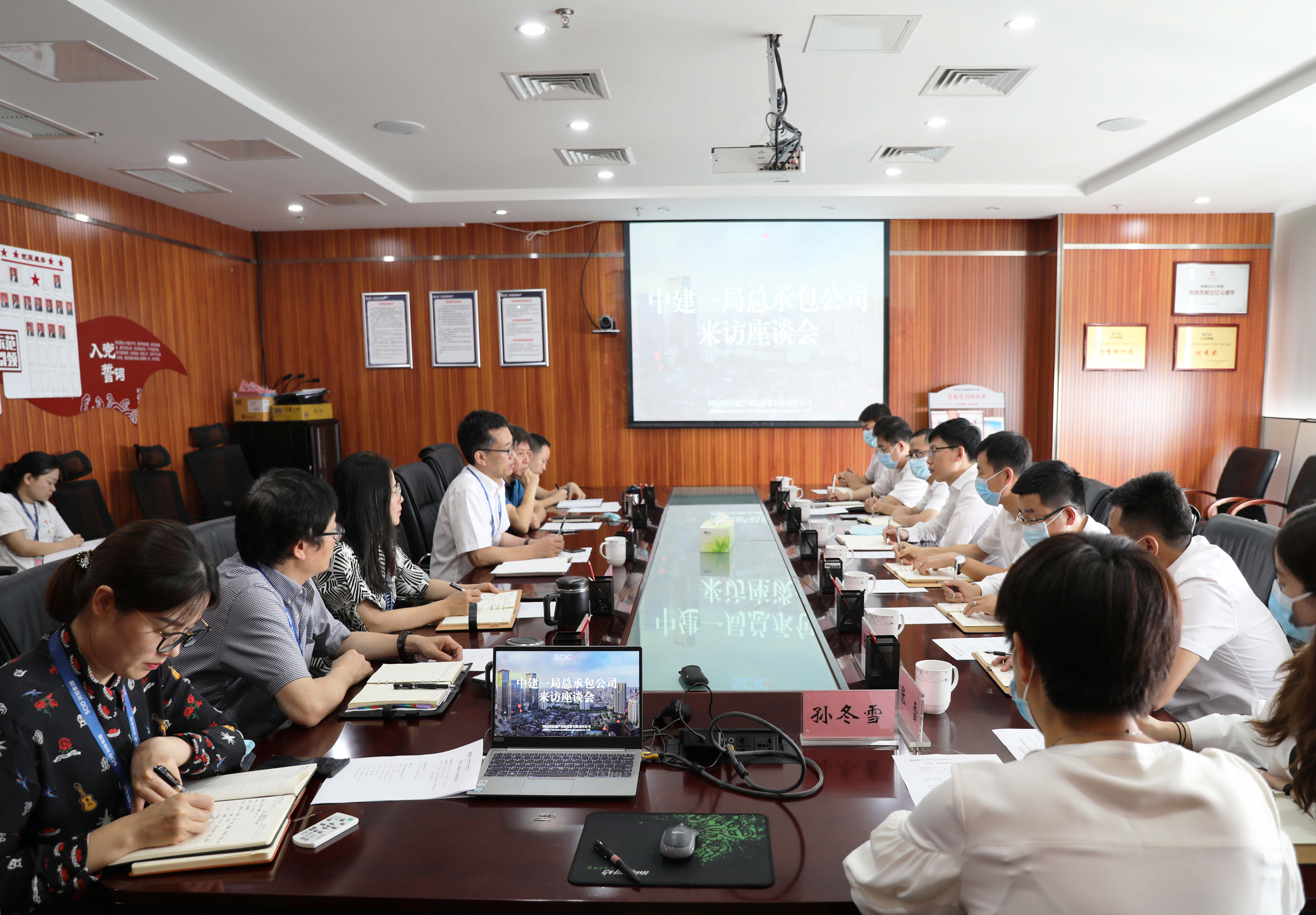 6月23日,集团总经理助理、经营管理部部长,房地产公司董事长李胜章在川投大厦会见中建一局总承包西南分公司总经理李艳龙一行。