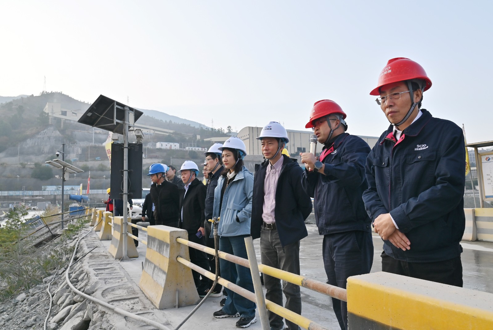 张昊一行深入银江水电站施工现场,详细检查了大坝基坑、施工变电站、银江大桥等区域,查看了智慧工地安全巡检系统。随后,对攀水电公司就传达学习贯彻落实习近平总书记重要指示精神和上级政府有关会议要求情况、重要专项活动开展情况等进行了详细检查,并听取了攀水电公司下阶段工程建设、安全管理情况汇报,肯定了攀水电公司为保持银江水电站安全生产平稳可控所做出的努力。
