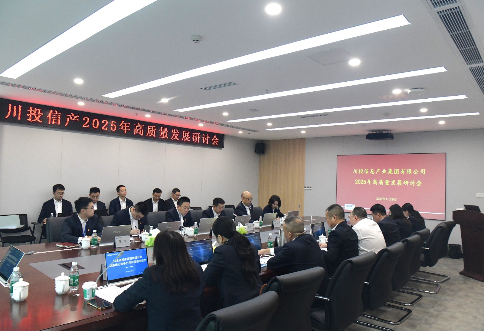 近日,川投集团副总经理、川投信产党委书记、董事长肖长青参加川投信产党委理论学习中心组2024年第9次学习(扩大)会暨2025年高质量发展研讨会。会议围绕党的二十届三中全会和省委十二届六次全会精神,结合公司2025年工作计划开展学习研讨。川投信产领导班子成员、中层以上管理人员,各所属二级企业主要负责人参加学习研讨。