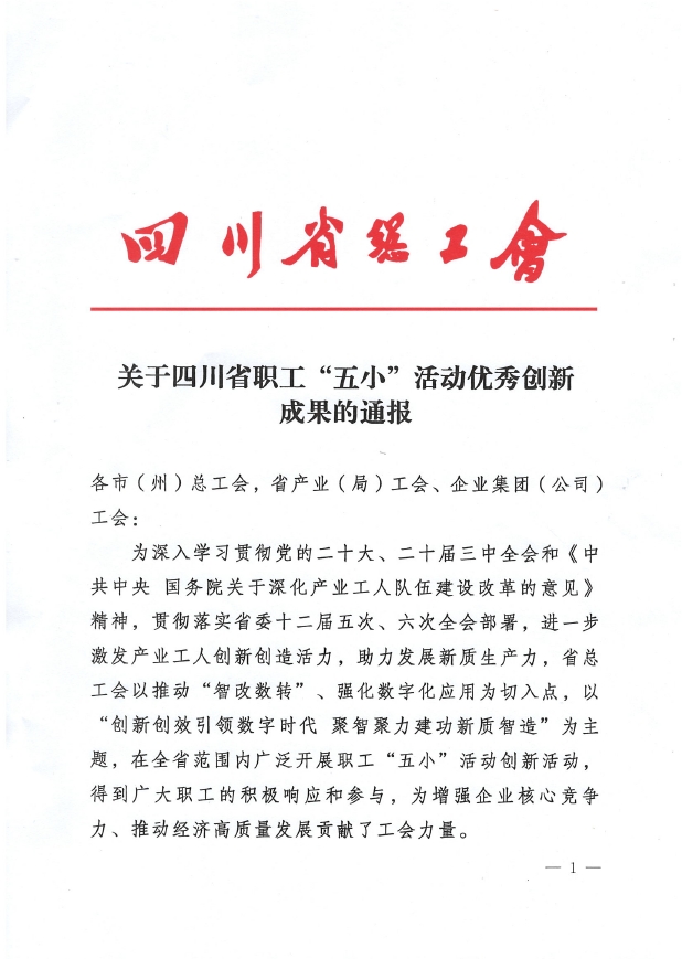 近日,四川省总工会印发《关于四川省职工“五小”活动优秀创新成果的通报》,川投集团所属川投信产《数字化仿真技术提高多片阵列型芯片瓷介电容器的应用可靠性》《高精度线材产品(卡簧)工艺技术创新》、川投田湾河《一种变压器油取样瓶清洗装置的研制》《水电站便携式电动操作阀门装置制作》共4项成果榜上有名。