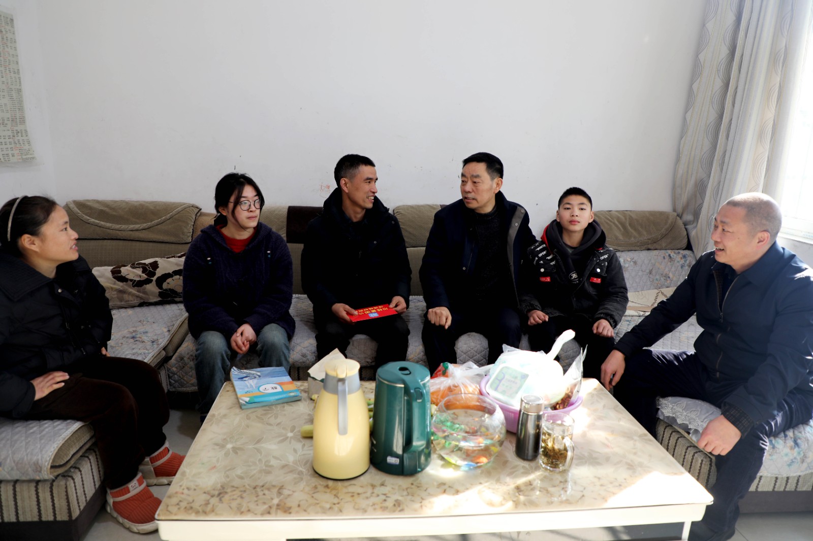 来到矿山救护队队员温鹏家中,邓凯向温鹏递上慰问金和慰问品。温鹏的父母均无固定工作,他本人此前就因车祸花去了巨额医疗费,其父亲又在近期检查发现身患疾病,家庭十分困难。邓凯饱含深情地讲到:“我代表集团专程来看望你们,一定要好好养病养伤,日子一定会好起来的。”