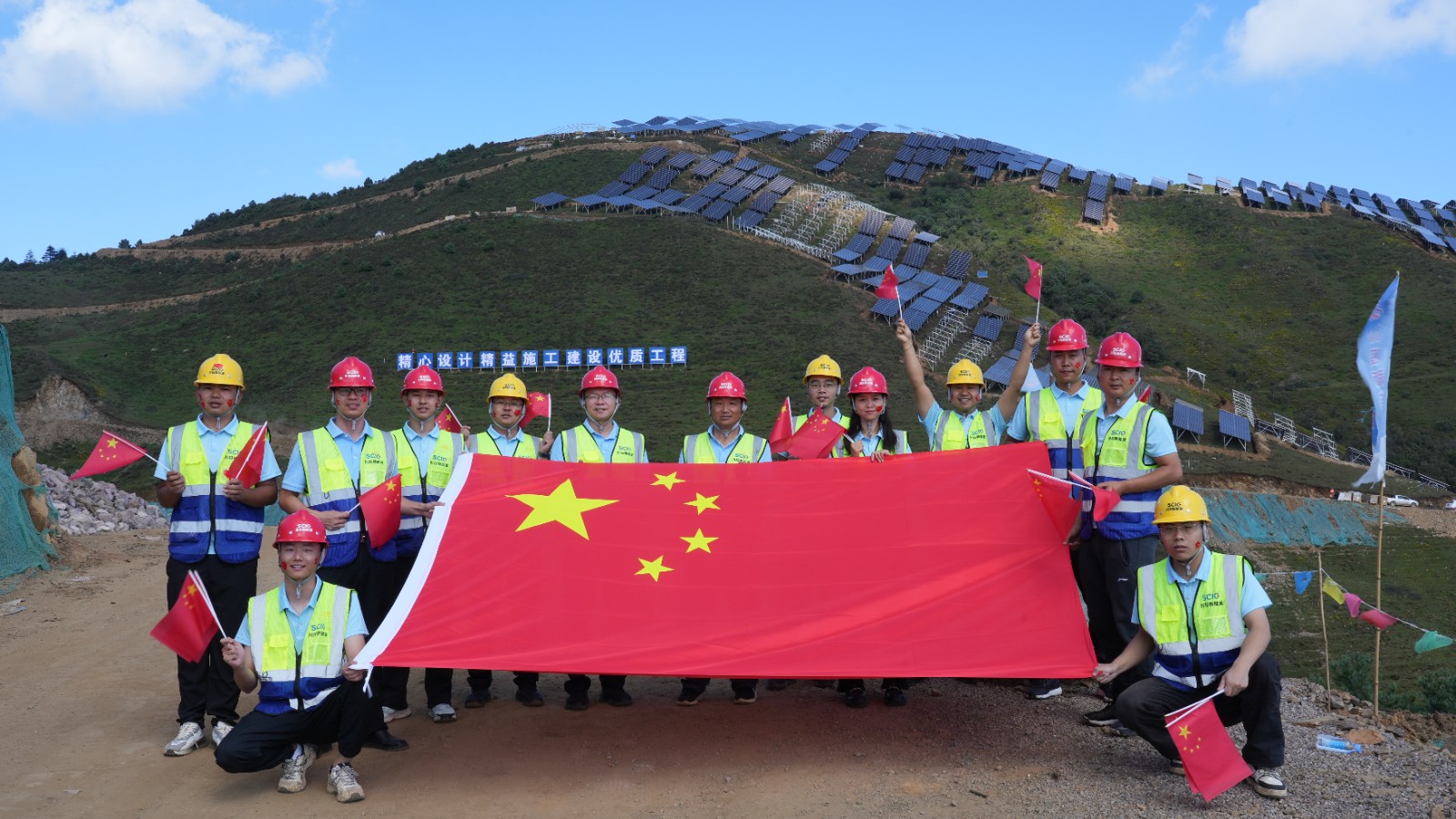 面对复杂地形与极端气候的双重挑战,项目团队严守安全红线,科学统筹、昼夜奋战并采用无人轨道运输与无人机吊装工艺,将光伏支架和组件安装效率提升30%,确保集团首个自主开发建设的集中式光伏项目于2024年12月30日投产并网发电,实现当年开工建设、当年投产并网发电的目标。