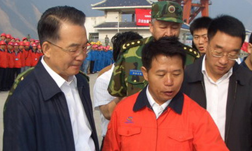 温家宝同志视察紫坪铺受灾情况