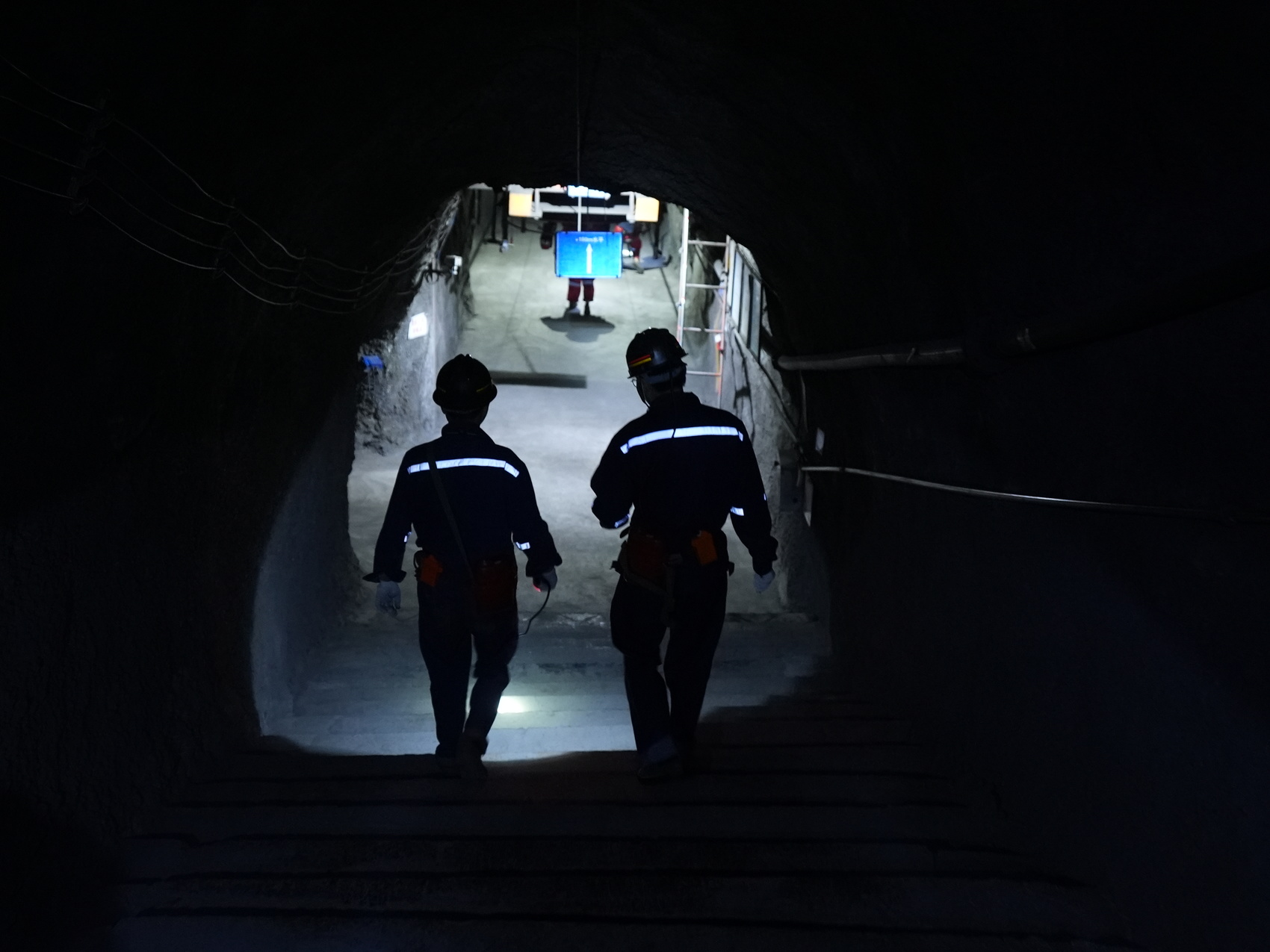 下午1点过,记者换好装备,搭乘“猴儿车”(一种用于地下矿山运输工人的设备)一路下行,然后在微弱的灯光中徒步前进,花了50分钟才走进1205智能化综采工作面。这里距离井口垂直落差超过200米,是嘉阳煤矿第一个智能化综采工作面。
