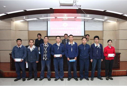 李红通报了公司“2014年度生产技术比武”的竞赛情况,并由公司领导为获奖人员现场颁奖。