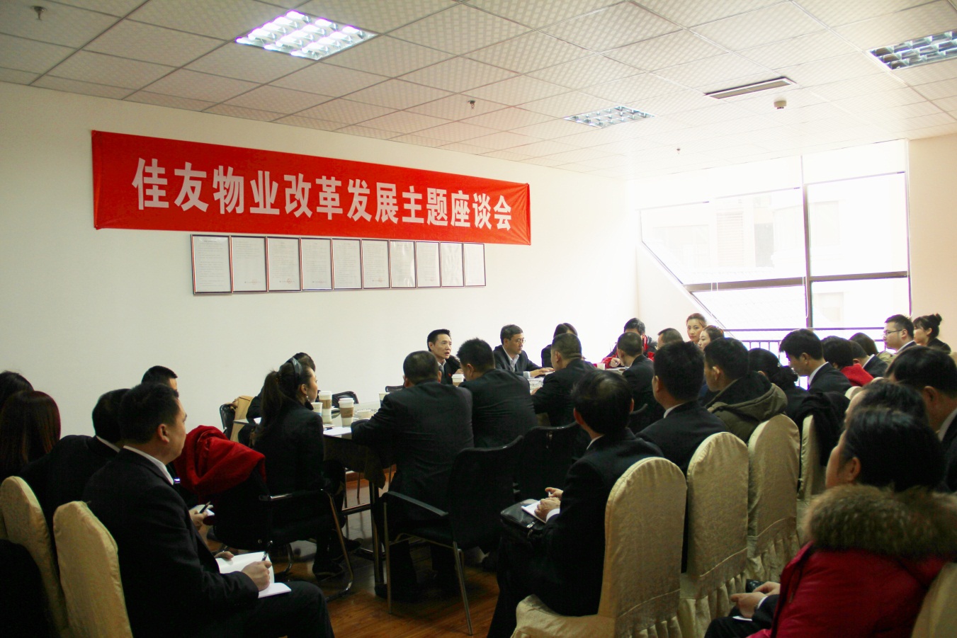 随后,在川网国际花园物业服务中心会议室召开了佳友物业改革发展主题座谈会。会上,王宾董事长指出,2017年是佳友物业深入推进改革发展的重要之年,在集团公司“3233”发展战略部署下,跟随集团公司深化改革的步伐,佳友物业迎来了很多重大的发展机遇。佳友物业全体员工要坚定信心,齐心协力加油干,为佳友物业的发展出谋献策,通过共同努力创造“佳友物业”品牌,全力拓展集团关联项目,大步迈向市场化道路。