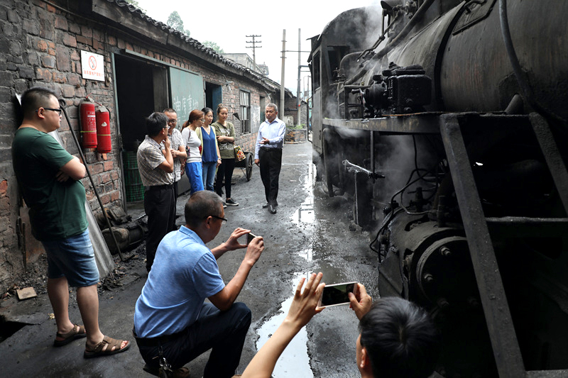 川投峨旅支部党员与小火车运行支部党员们一同来到检修车间,了解小火车新8号机车制造基本情况,以及学习如何科技攻关。小火车运行部副部长、技术员袁涛为党员们讲解了蒸汽机车运行原理、主要构件、安全隐患和嘉阳小火车的自身特点以及技术难点。大家就“火车怎么开”、“相关部件都有些什么作用”、“机车运行中的一些典型故事”、“安全保障怎么提升”等感兴趣的问题纷纷向检修师傅们展开咨询和讨论。