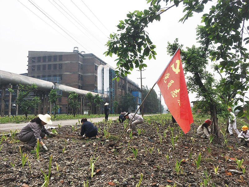 “哪里有需要,哪里就有党员的身影”。8月16日早上8时,鲜红的“党员志愿者”旗帜高高飘扬在新银江二分厂绿化带上,由机关党支部、生产系统党支部、供销系统党支部28名党员组成的突击队员们顶着炎炎烈日,排成纵队,对分厂五个区域绿化带上的杂草再次进行拉网式彻底清除,经过近8个小时的劳动,绿化带内再看不见杂草丛生,只剩下枝枝鸢尾叶在阳光下闪耀着微光,映射着党员志愿者们绯红的面颊、湿透的衣衫!劳动结束后,志愿者们又把目光投向了分厂渣山上密密麻麻的蓖麻树……。