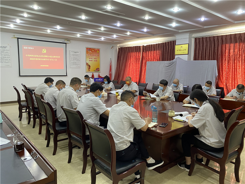 旗帜指引方向,核心领航未来。根据上级党委统一部署和安排,7月4日,天彭电力召开2022年第7次中心组学习(扩大)会,天彭电力党总支书记、董事长、总经理陈忠在会上对贯彻落实习近平总书记来川视察重要指示精神和省第十二次党代会精神作专题宣讲,公司党员干部、关键岗位人员参加学习。
