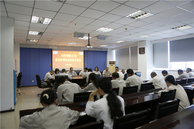根据公司内部质量管理体系审核工作安排, 7月8日,川投峨铁公司在908会议室召开了2022年质量管理体系内部审核工作末次会议,公司党委副书记、总经理陈新龙及在家领导班子成员审核小组成员、质量管理体系涉及单位分管质量管理工作的负责人参加会议。