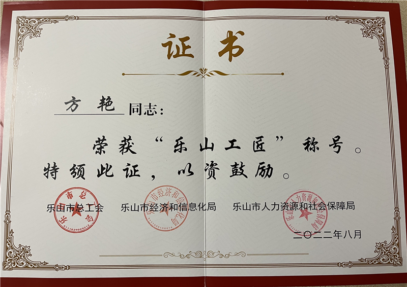 8月31日,乐山市总工会、市经济信息化局、市人力资源社会保障局共同举办第二届“乐山工匠”,川投峨铁技能人才辈出,质量检验中心方艳被受表彰。