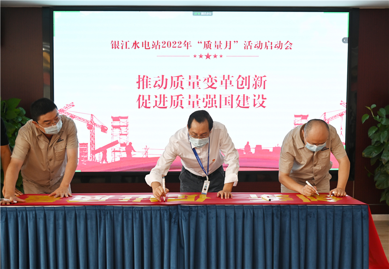 为积极响应国家“质量月”活动号召,努力增强全员质量责任意识,9月3日,公司组织召开银江水电站2022年“质量月”活动启动会。川投能源副总经理、公司党总支书记、董事长、质委会主任徐孝刚,公司党总支副书记、总经理、质委会主任吴巍屿,公司副总经理唐伽出席会议,公司工程管理部、长江设计代表处、各监理部、各第三方质量检测中心、各施工单位项目部领导、质量管理人员共计20余人参加活动。