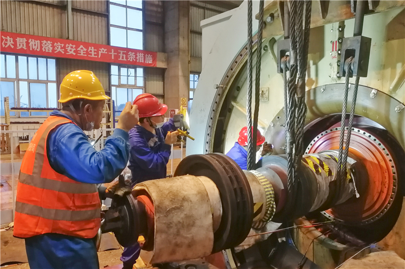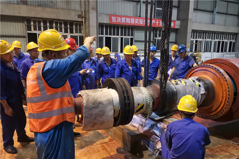 “转子联轴滑块已取出”“汽侧转子护环已通过。”随着对讲机里短促有力的发声,公司2号发电机抽转子一次成功,标志着2号发电机检修工作完成重要节点,为高质量完成发电机检修任务奠定了坚实基础。