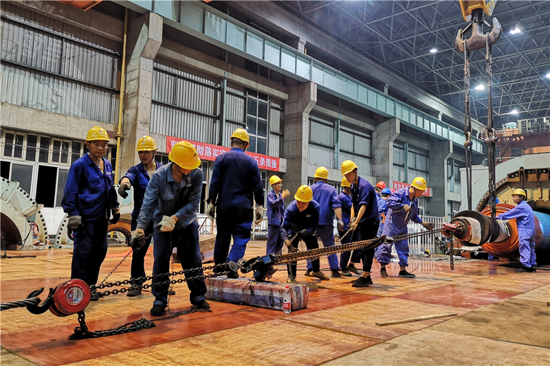 发电机抽转子是发电机检修的关键一环,检修精度高、操作难度大、风险系数高,工艺要求十分严格,是整个检修工作中难度最大的一项工作,更是对检修人员技术水平以及配合能力的全方位考验。为保障发电机转子安全按期抽出,公司相关部门竭诚尽智协调人力物力,专业组成员一丝不苟确认开工条件,各相关部门负责人、专业组组长始终坚守现场。19日19时,2号发电机抽转子工作正式开始,作业人员严密监视汽励两端定转子、转子护环、端部线圈等重要部位,不断调整定转子间隙,防止发生剐蹭,确保抽吊全过程安全可控。22时,发电机转子随着揽绳牵引缓慢移出,平稳出膛,安全转移至转子托木上,抽转子工作顺利完成。