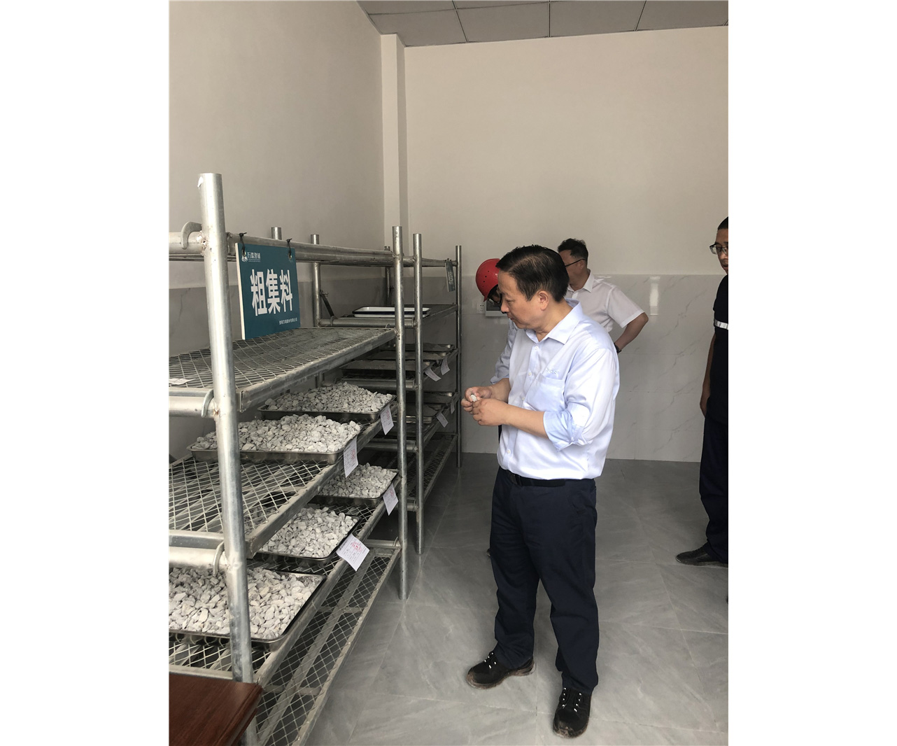 在商混供应站,梁红兵抽查厂房内的水泥、碎石、河沙等原材料质量情况,详细了解原材料供应渠道、产品质量管控、供应保障等方面情况。他强调,原材料品质的好坏决定着工程质量的优劣,参建各方要以质量月活动为契机,将质量至上理念深入人心,树立“质量第一,安全为先”的理念,狠抓原材料质量管理,筑牢企业发展基石,营造人人关心质量、重视质量、追求质量、创造质量的良好氛围,共同铸造一流工程。