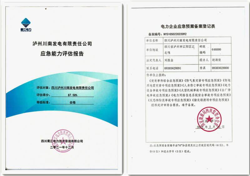 根据《国家能源局关于印发〈电力企业应急能力建设评估管理办法〉的通知》和《发电企业应急能力评估规范》相关要求,公司于2021年9月启动了应急能力建设评估和应急预案评审工作。为确保两项工作的顺利推进,公司制订了《应急能力建设评估管理办法》,成立了应急能力建设评估领导小组,组织对《突发事件综合应急预案》等28个应急预案进行了修订。2022年4月,修订后的应急预案通过了专家评审。2022年7月,公司完成在国家能源局四川监管办公室的备案工作,并于近日收到了《电力企业应急预案备案登记表》(备案编号:NY5105022022092)。邀请了专家组到公司进行实地考察,开展应急资源调查和事故风险评估工作,先后完成了公司《应急资源调查报告》、《事故风险评估报告》、《应急能力评估报告》。参加本次评估的专家一致认为,川南发电公司高度重视应急工作,不断健全应急体系,完善应急机制,规范应急管理,提高应急处置能力,实现了应急能力的持续提升。