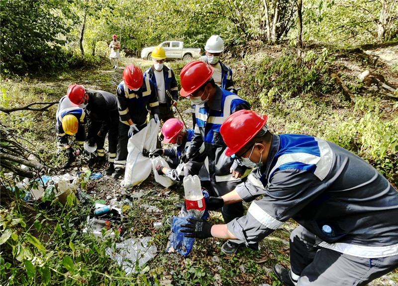 此次垃圾清理路线覆盖萨河闸首处至营地生活区沿线,该沿线依山傍水、风景优美,上有卡杜里覆盆子瀑布,下有避暑小树林,是格鲁吉亚东部地区的“网红打卡地”、避暑胜地。值此“世界清洁日”,为保护沿途自然环境,中格人员集体驱车前往萨河闸首,手持编织袋,沿河收集垃圾。在大家的共同努力下,清理出塑料瓶上千个、废纸杂物等物品若干,他们将搜集的垃圾运回电站进行统一处理。