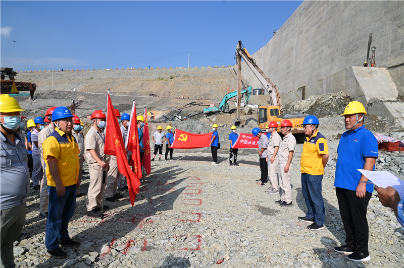银江水电站自2019年开工以来,公司组织各参建单位连续克服高温酷暑、疫情常态化防控、地质条件差、征地拆迁推进难度大等困难,先后实现导流明渠过流、大江截流等重要节点目标,取得了提前一年大江截流的优秀成绩,目前正全力向首台机组投产发电重要目标冲刺。按照省委省政府、市委市政府和川投集团、川投能源关于“决战四季度、大干一百天”的重要决策部署,公司认真谋划,精心组织,9月29日顺利开始了泄水系统首仓混凝土浇筑,实现了银江水电站工程建设第四季度开门红。浇筑过程中,攀水电公司机关第一、第二党支部为一线作业人员送去了解暑良药“绿豆汤”。