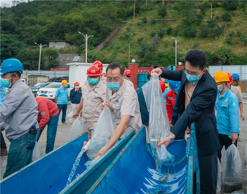 为深入贯彻新时代新发展理念,践行习近平总书记“两山”理论,扛起长江上游生态保护屏障政治责任,充分展示川投能源攀水电公司对生态环保工作的重视,彰显国有企社会责任。9月28日上午,攀水电公司在银江水电站左岸上游围堰处组织开展了2022年度增殖放流活动,并取得圆满成功。川投能源副总经理、攀水电公司党总支书记、董事长、攀新能源公司董事长徐孝刚,攀水电公司党总支副书记、总经理吴巍屿出席活动。