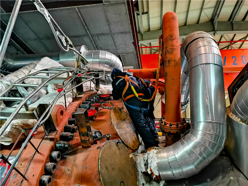攻坚克难,严把检修工艺标准。目前,#2机燃烧室检查、余热锅炉再热器底部漏烟气治理、循环水泵技改、天然气调压站技改及防腐、电气设备预防性试验与清扫等工作正有条不紊地开展中。面对工期紧、任务重、技术难度大等困难,检修人员始终坚守在检修现场的最前沿,牢牢把握检修工艺根本要求,全力做到“应检必检、检必检好”,确保高效优质地完成此次机组检修任务。