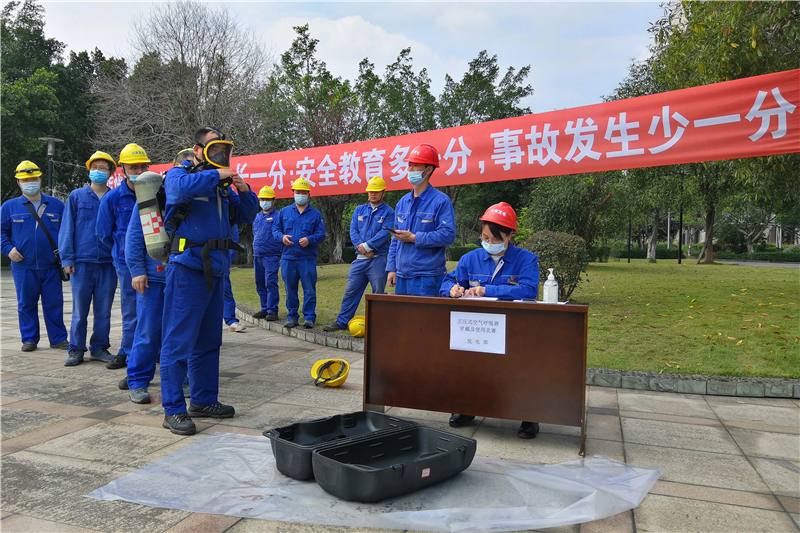 现场比赛结束后,裁判组请王鑫重新展示了一遍正压式呼吸器的穿戴和使用,并进行了全程录像,计划将其作为今后员工培训的教学视频。