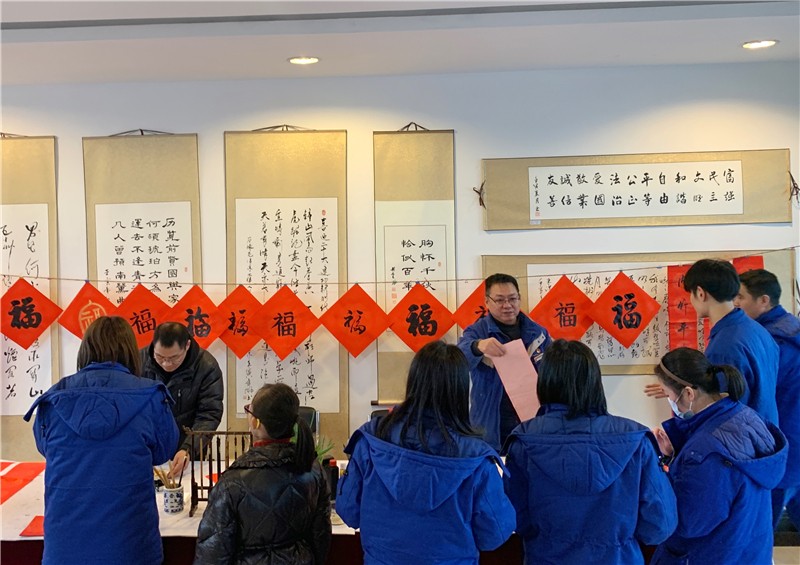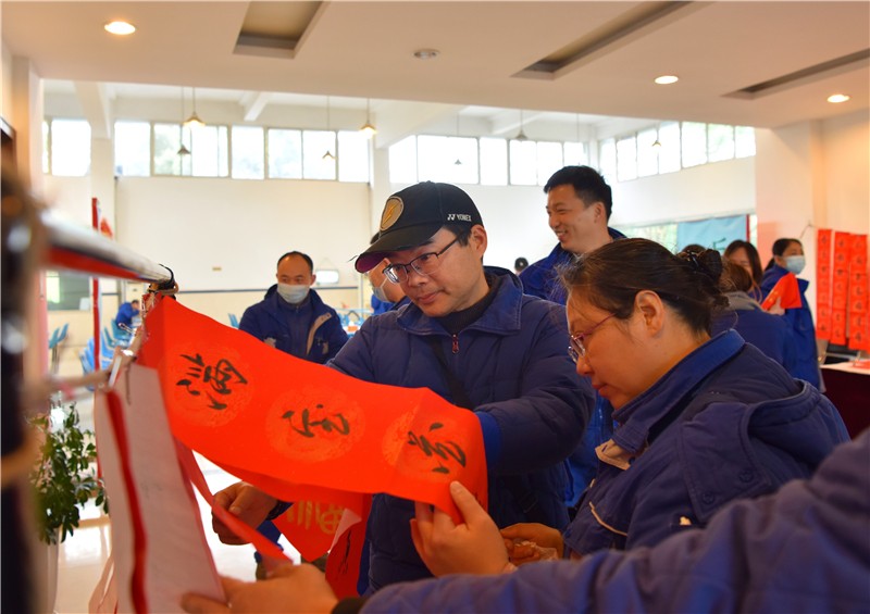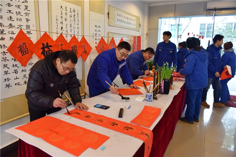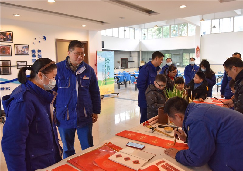为弘扬中华优秀传统文化,丰富公司职工文化生活,1月18日中午,川南发电公司在运行宿舍区开展了“送万福,进万家”书法公益活动,现场为公司职工写“福”字、送春联,为即将到来的新春佳节增添了喜庆的节日气氛。