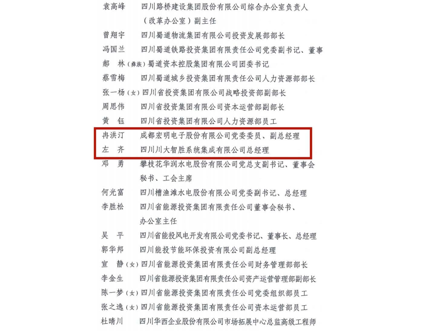 近日,省国资委、省人力资源和社会保障厅对全省国资国企改革发展99个先进集体和198名先进个人进行了表彰。川投信产所属宏明电子获评“四川省国资国企改革发展工作先进集体”,宏明电子党委委员、副总经理冉洪汀与智胜集成总经理左齐获评“四川省国资国企改革发展工作先进个人”。