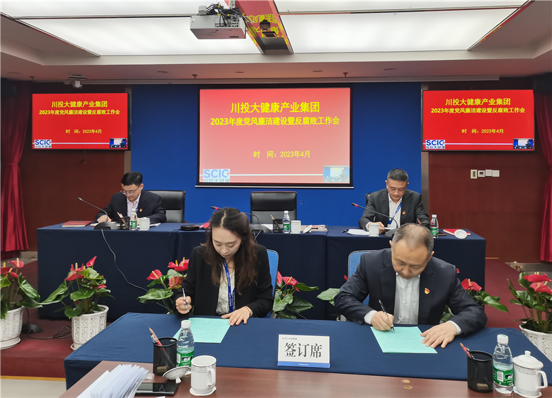 此次会议集中学习了二十届中央纪委二次全会、十二届四川省纪委二次全会精神。公司党委委员、纪委书记姜波部署了2023年度党风廉洁建设和反腐败工作。公司党委书记、董事长、总经理鲁洪斌代表川投大健康产业集团领导班子作了2023年度个人廉洁公开承诺,并与部门签订《川投大健康产业集团2023年度廉洁从业、廉洁建设责任书》。