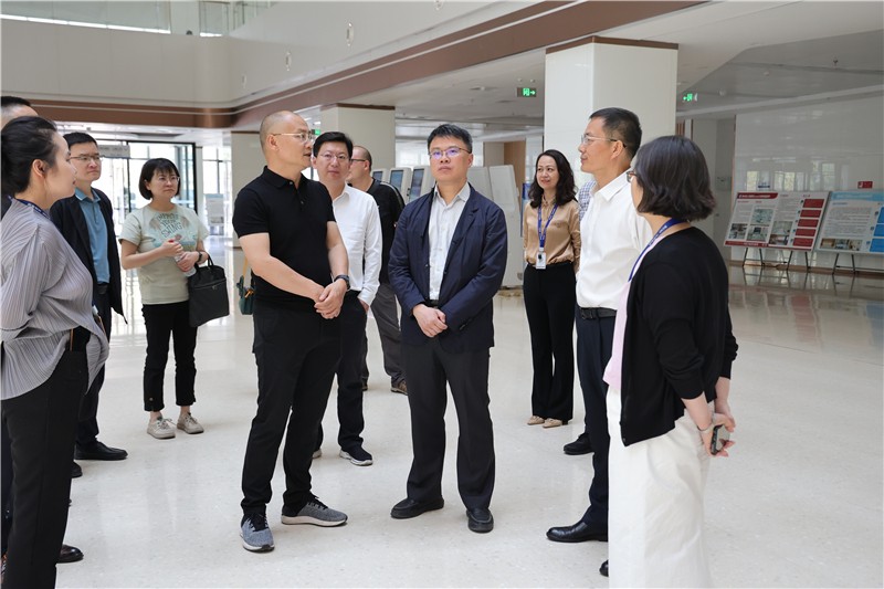 张峰一行先后到医院门诊大厅、放射影像中心、健康管理体检中心、住院病区、康养区参观调研并举行座谈,调研组详细询问了医院建设情况、人才队伍建设情况、学科建设情况、运行情况,对我院去医院化的设计理念、现代化的布局流程、先进的硬件配备、优质的服务理念表示了肯定。