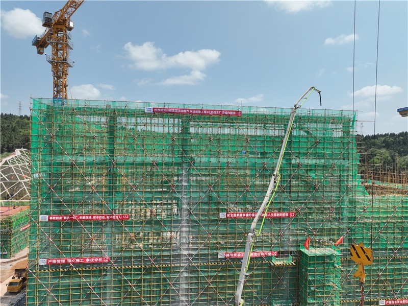 4月27日11:58分,资阳燃气电站新建工程#1机组主厂房39米层梁、柱砼浇筑结束,标志着#1机组主厂房结构正式到顶。