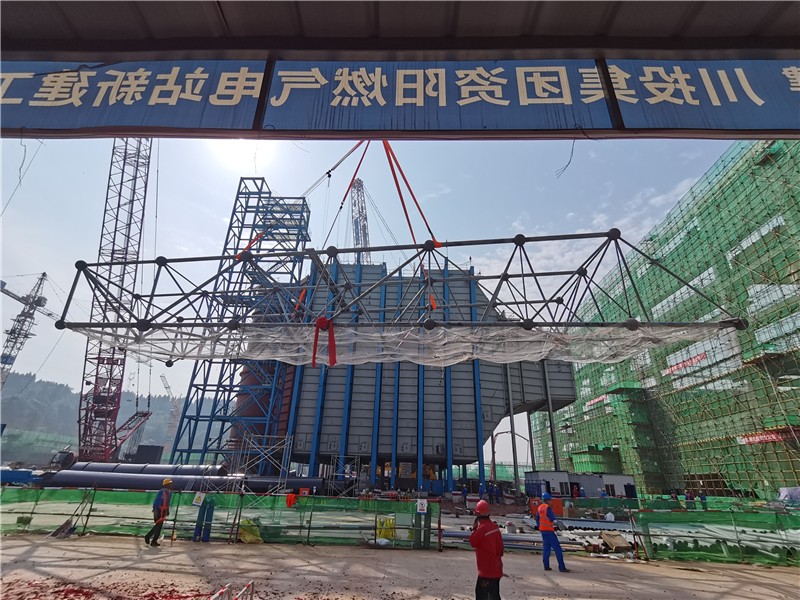 主厂屋面网架吊装开始标志着资阳燃气电站主厂房结构进入封闭止水阶段,为下步主机安装奠定了基础。
