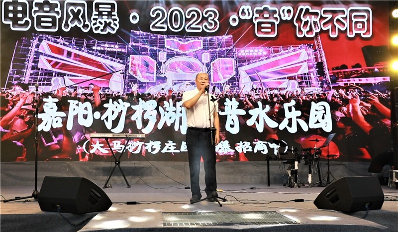 6月30日晚,嘉阳·科普水乐园首届电音节在大马桫椤湖国家湿地公园正式启动,嘉阳集团党委副书记、总经理范勤英现场宣布电音节开幕。