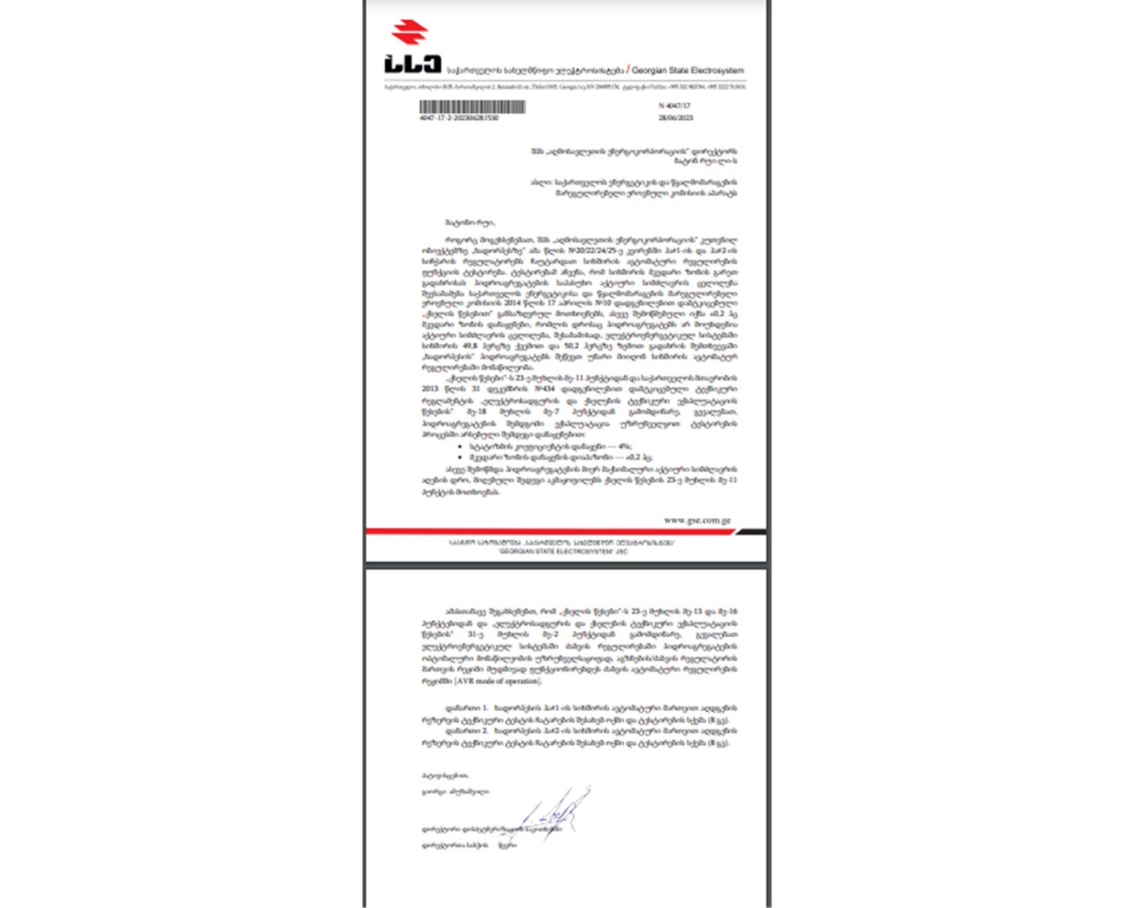 6月28日,公司收到GSE签发正式函件,且已同步抄送当地监管机构格鲁吉亚能源协调委员会(GNERC),确认两台机组均满足电网要求的自动频率调节功能,机组获得最大有效容量的时间也符合格鲁吉亚《电网法》第23条第11款要求,这是电站在合规运营上迈出的坚实一步。