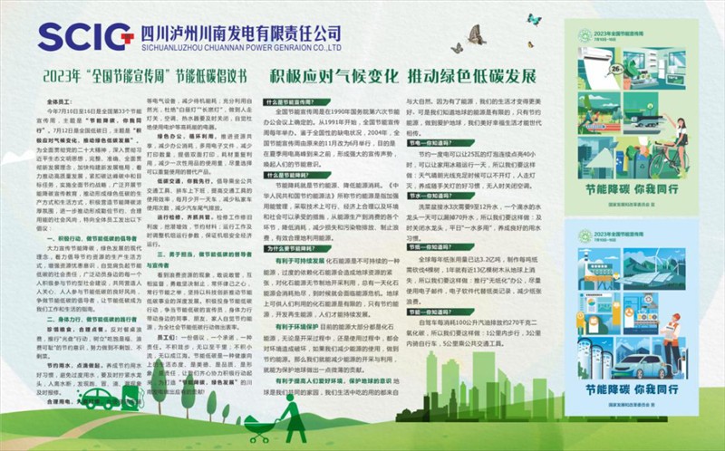 7月10日至16日是全国第33个节能宣传周,主题是“节能降碳,你我同行”。7月12日是全国低碳日,主题是“积极应对气候变化,推动绿色低碳发展”。公司以多种形式,扎实开展节能宣传周和全国低碳日活动。