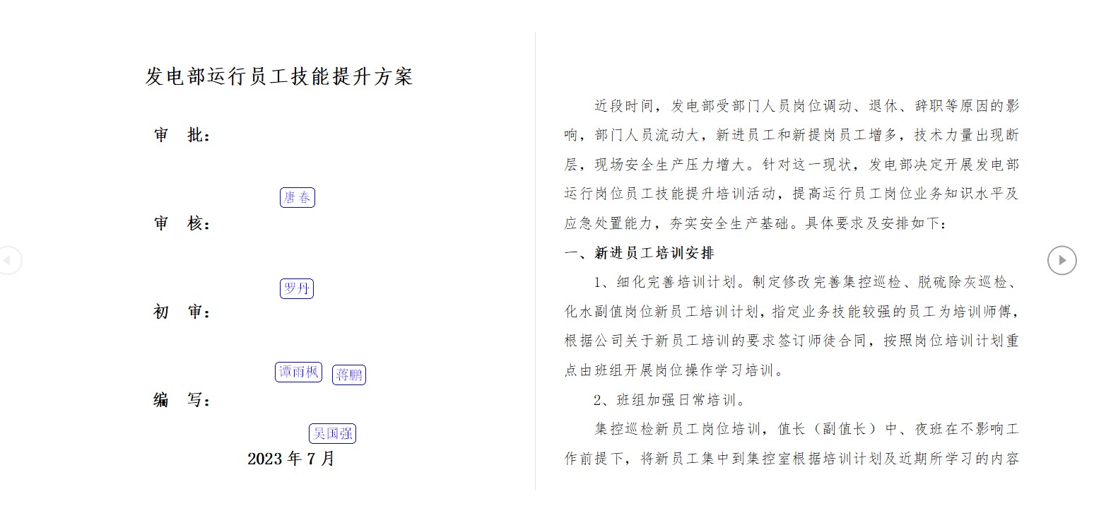 近日,公司启动发电运行员工技能提升专项行动,制定了《发电部运行员工技能提升方案》。此次技能提升专项行动也是公司“安全管理基础提升年”的活动之一。