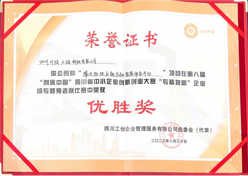 近日,第八届“创客中国·创业天府”四川省中小企业创新创业大赛“专精特新”企业组专题预选赛(四川工创赛区)在成都成功举行,川投信产所属川投云链凭借“撮合拍供应链金融智慧服务平台”从24个参赛项目中脱颖而出,荣获优胜奖。