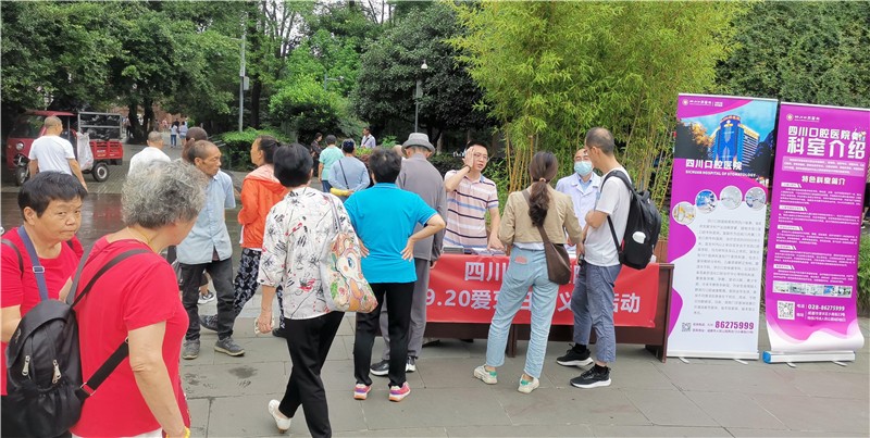 9月19日-20日,四川口腔医院在成都市人民公园设置口腔健康筛查点,为居民提供口腔健康筛查服务。医务人员针对老年人常见的龋齿、牙周病、牙齿缺失、楔状缺损及口腔黏膜病等疾病,给予了专业的诊疗建议,并普及了口腔日常清洁维护、口腔疾病预防以及中老年人缺牙修复等健康知识,义诊活动深受周边居民好评。