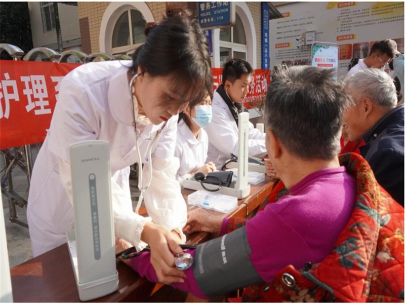 为提高社区居民预防疾病意识,引导大家养成良好的生活习惯,学院护理系结合自身专业特点,10月28日,护理系教师带领18名志愿者在市高新区狮子山街道办娇子社区,为社区居民开展测量血压、推拿按摩等多项志愿服务项目,并进行健康宣讲普及。