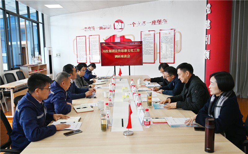 在宣传思想文化工作调研座谈上,观看了展现川投电力党委特色党建工作的微电影《轻骑兵在行动》和《走好新时代长征路》,杨涛向何金辉一行汇报了川投电力党委党建亮点工作和“星光聚力”等党建品牌创建、企地共建以及理论宣讲工作开展情况。何金辉对川投电力党建工作取得的成绩给予充分肯定。他指出,川投电力党建工作充分体现了“星光聚力”党建品牌的丰富内涵和精神实质。他要求,川投电力党委要继续加强党建工作,一要持续强化理论学习,特别是加强党委理论中心组学习,不断用党的创新理论成果指导和促进工作,有效推动生产经营高质量发展;二要持续强化意识形态工作,从思想上和行动上与党中央的各项决策部署保持高度一致,强化责任意识,深入基层单位,扎实做好信访稳定工作;三要持续加强群团工作,从思想文化宣传等方面全方位促进安全生产和经营发展,起到凝聚人心、汇聚力量的作用;四要持续发挥国有企业的社会责任,在经营发展、企地共建等工作中不断总结经验,树立企业良好社会形象。