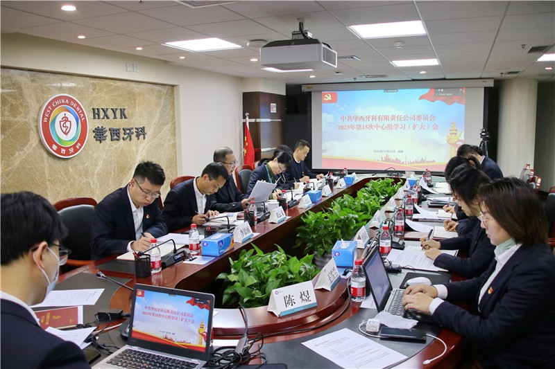 11月22日上午,华西牙科召开第15次党委理论学习中心组学习(扩大)会。华西牙科党委书记、董事长、总经理刘凌云主持会议,党委副书记、工会主席金晶,党委委员、副总经理刘云戈,党委委员、财务总监单丹,副总经理李景雨,党委委员、纪委书记邓云斌出席会议,华西牙科中层以上管理人员、所属公司主要负责人列席会议参加学习。