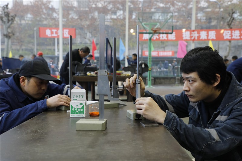 12月6日,在前期进行参考人员互评打分等工作的基础上迎来主要技术工种理论大考,各工种人员分两批入场交叉考试,严格细致的监考方式营造出了公开、公平、公正的氛围,大家认真阅题、仔细思考、沉着冷静,充分发挥自己的真实水平。12月7日,矿区文体活动场地全部变为技术比武场,场地内钳台、钻床、电气开关、电氧焊机分门别类、鳞次栉比,参考人员分4批入场,考试紧张而激烈,抢时间、追进度、保质量,大家八仙过海各显神通。