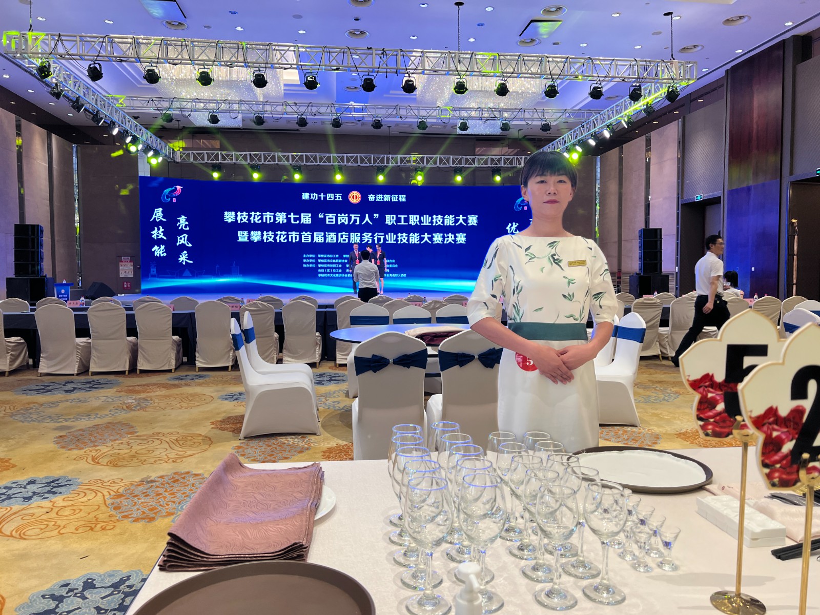 红格温泉假日酒店向香苹获攀枝花市第七届“百岗万人”职工职业技能大赛暨攀枝花市首届酒店服务行业技能大赛优秀个人奖、中式摆台三等奖