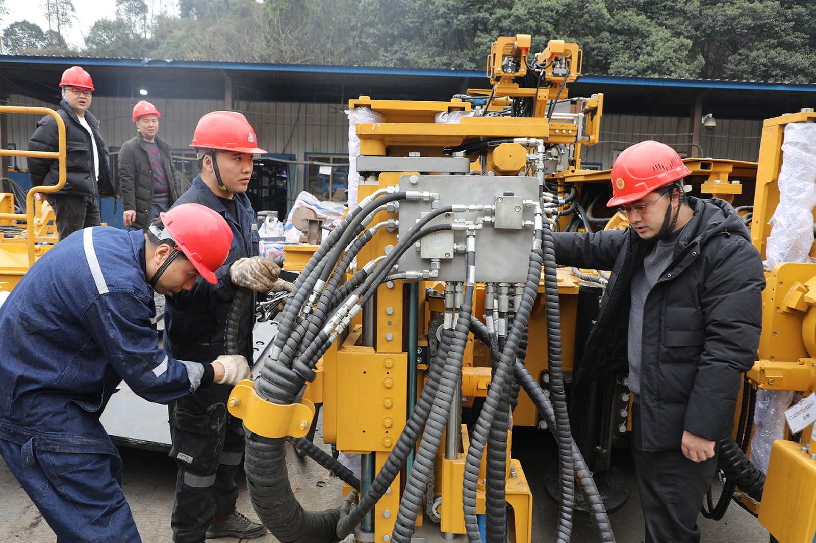 为了缓减采掘接替紧张局面,助力采煤高产稳产,嘉阳煤矿以新质生产力为抓手,投资600余万元新购了EBZ280A型快速掘进系统。3月14日,新系统主要设备运抵煤矿工业广场,掘进一队正组织精兵强将组装笨重的设备及部件,为备战地面三机联调干得热火朝天。