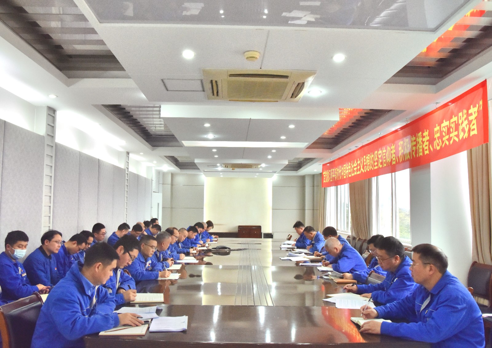 2024年3月15日,川南发电公司召开2024年第三次党委理论中心组(扩大)学习会,专题开展国家总体安全观的学习研讨。学习会由公司党委书记、董事长刘胜金主持,在家公司领导、全体中层管理人员参加学习研讨。