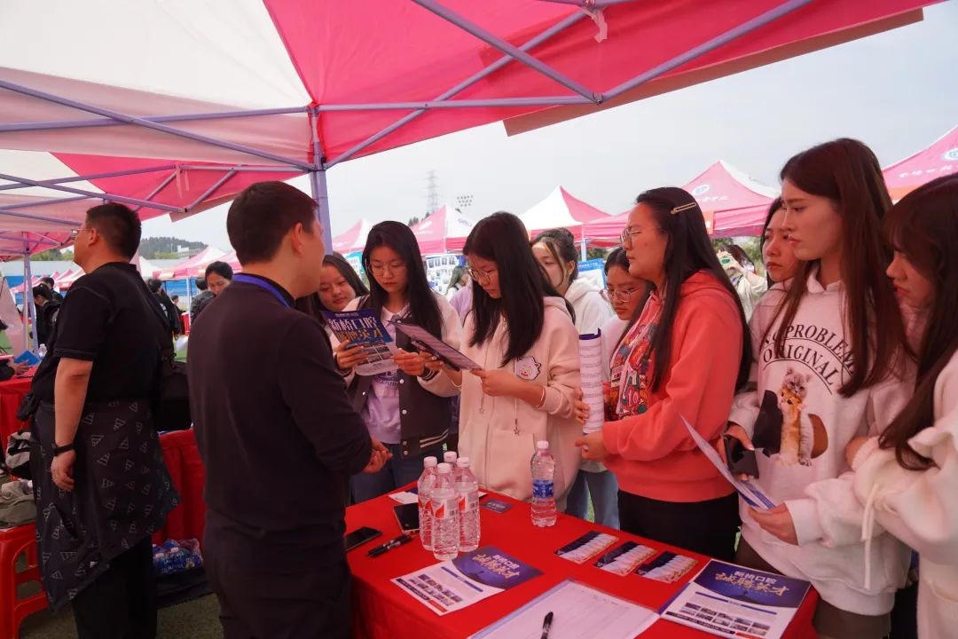 3月20日下午,资阳口腔职业学院举行“职通未来·筑梦起航”2024届毕业生双选会。现场100余家用人单位提供了近三千个就业岗位,涉及口腔、医疗、康养、营销等多个领域,吸引了近千名应届毕业生前来求职。