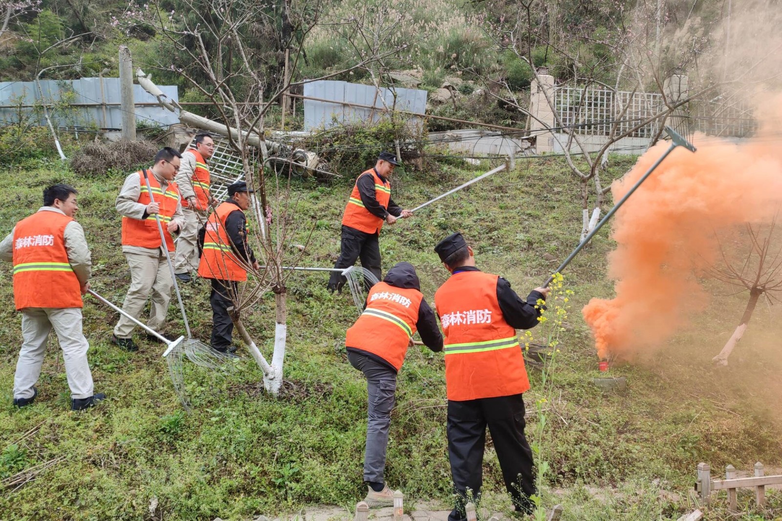 活动分为操作培训和实战演练两个部分。培训环节着重对便携式消防水泵、消防水带、水囊以及2/3号专用森林灭火工具等装备器材进行讲解和操作演示,参培人员依次进行实操演练,熟悉扑火机具操作使用方法。演练环节模拟现场营地配电房一侧林地发生火情,公司应急指挥部快速响应,按照初期火情处置,立即组织现场义务、兼职消防队员到达现场进行灭火,扑火队员使用灭火器、灭火水枪、专用扑火工具等,迅速控制并扑灭了火情。