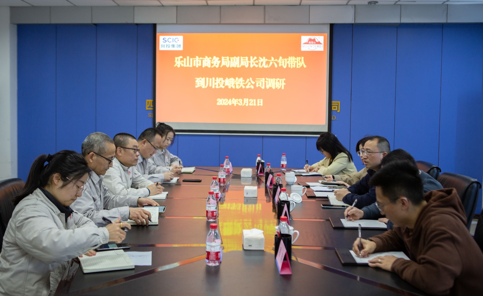 为进一步优化对外贸易营商环境,增强进出口贸易流通市场发展动力,3月21日,乐山市商务局副局长沈六旬等一行5人到川投峨铁公司开展进出口贸易业务调研工作。川投峨铁公司党委副书记、总经理陈新龙与来访客人进行了交流座谈。