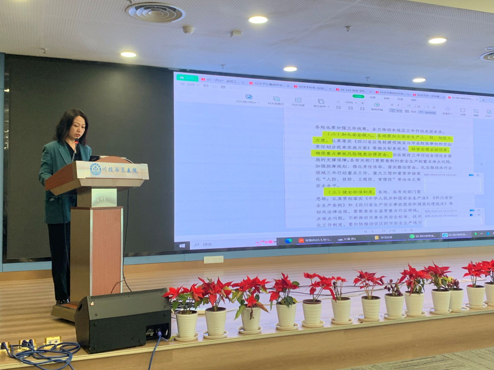 2024年3月19日,西昌大健康公司组织召开2024年第1季度安健环委员会。公司安健环委员会主任龚坚、常务副主任陈奕、副主任金鸿、蒲军、陈刚、朱彦、钟萍以及公司、医院各部门、科室负责人、护士长、兼职安全员、安全生产部等相关人员参加会议。