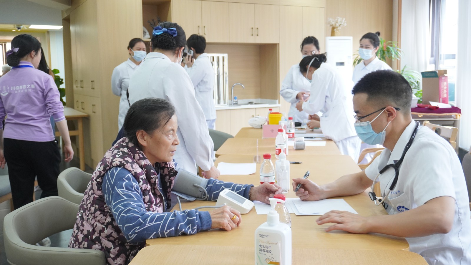 活动中,成都上锦南府医院/四川大学华西医院上锦医院麻醉手术中心的医生护士们为武侯区吉福社区和川投舒适之家·武侯吉福院长者们进行健康义诊。医护人员通过了解各位长者的生活起居、基础疾病的用药及治疗、日常康复等情况,为咨询长者提供专业化建议,并与养老机构护理人员沟通长者后续照护及康复计划,切实将长者个性化康复需求与机构护理、医疗保障有机结合,为机构及社区长者安享健康幸福晚年生活保驾护航。